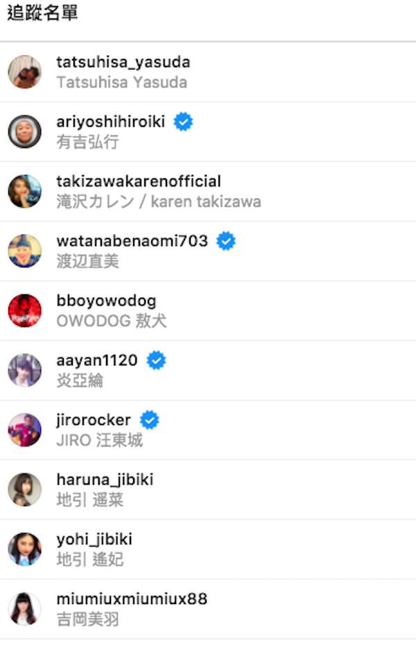 到藤井莉娜的Instagram一看,發現追蹤人數18人裡面,果然有汪東城,如果戀情是真的,汪東城肯定瞬間躍升成為演藝圈「癡情男」代表啊,女神變女友可不是人人都能辦到的!