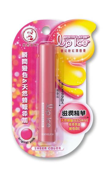 富含保濕修護成分的變色粉紅潤唇膏看起來普普通通、沒有顏色,但塗上後隨著雙唇濕度的不同,會變換深淺不同的粉紅色唷。