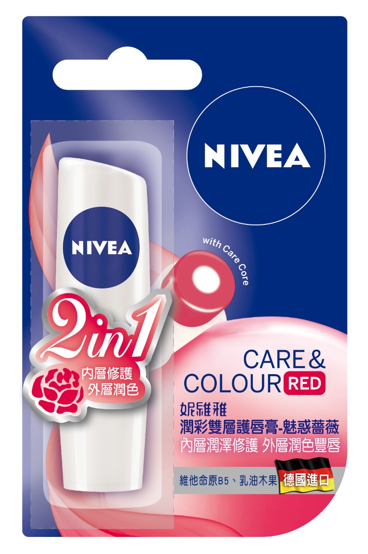 妮維雅第一支雙層護脣膏,唇膏內層白色為護唇成份,含有維他命原B5能修護唇部表皮乾裂狀況,維持健康雙唇。還能隨心搭配不同風格妝容,展現自信魅力的一面。