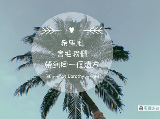 ▼這種透明押字的浮水印我很喜歡,給人很清幽、舒服的感覺,拿來放在風景或是綠草地上會非常加分!!(而且很適合配上插畫家Dorothy的語錄)