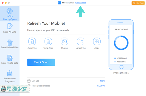 注意!這款『iMyFone Umate Pro』並不是iOS App,而是裝在電腦中的喔,Windows和Mac版本都有。iMyFone的產品都和蘋果相關,而清理手機空間的iMyFone Umate,只要註冊成為iMyFone的會員就能免費下載。既然是免費的沒理由不拿,只要記得定時接上iPhone來整理手機空間就好啦~