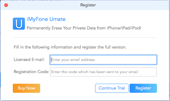 點開iMyFone Umate,你會看見上方寫著「未註冊(Unregistered)」,點進去之後會要求你輸入剛剛留的信箱,跟它們提供給你的註冊碼,打好後就能成功註冊,就能自由使用清理功能囉~