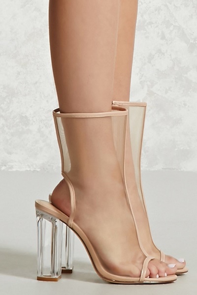 如果還是覺得太裸露?可以挑選比較朦朧的網眼路線,像鏤空網眼水晶透明高跟涼靴,若隱若現你的腳部肌膚