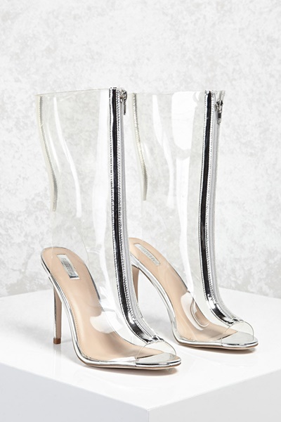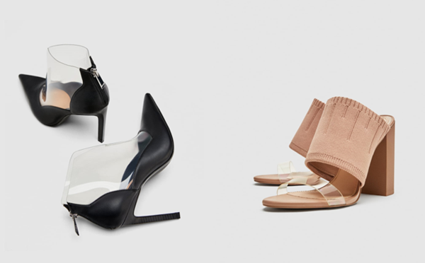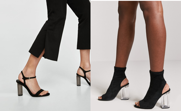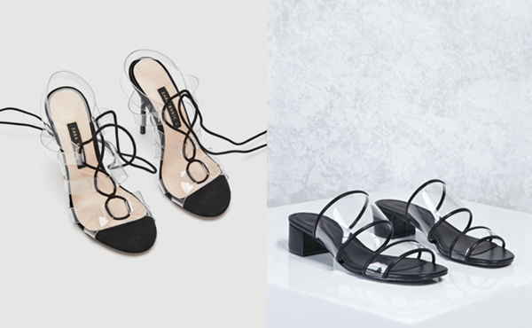 要不然選擇透明有支撐力但看不太出來的鞋款,這兩雙透明塑膠中跟短靴跟透明塑膠絆帶高跟涼鞋,就是比較好穿又好看有特色的!