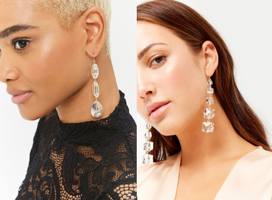 再來是搭配上,穿著洋裝時,搭配透明的水滴耳環,會瞬間有種尊貴高雅感!