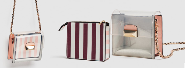 或是大部分新出的透明包都是有內附一個彩漾包的,像透明塑膠迷你單肩包,粉嫩配色也太櫻花味了吧!