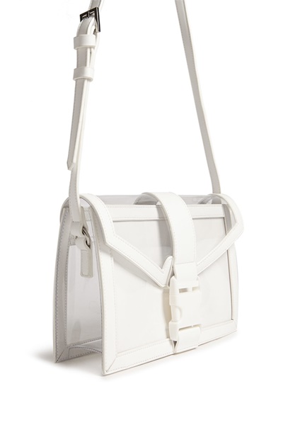 有這種部份遮蔽的仿皮透明翻蓋單肩斜背包,也是很有質感。