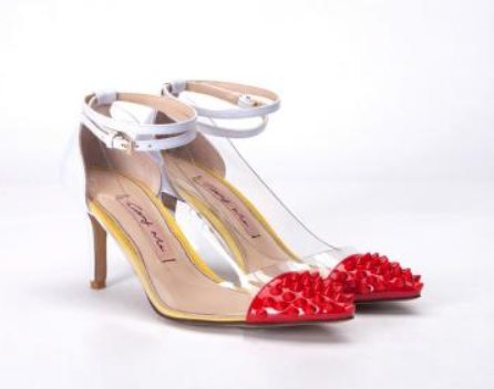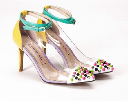 (EVA 透明踝帶尖頭高跟鞋 (亮面彩虹))