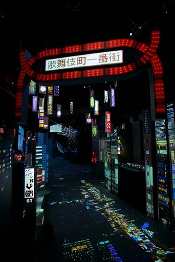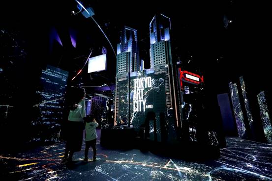 東京都廳為新宿的文化中心,以高層建築群及日本第一繁華街歌舞伎町為背景,可以看到新宿整齊的辦公大樓和熱鬧市集,新舊街區兩種完全不同的風情,展現多元文化面貌。東京都廳人們的生活樣貌以光影、科技、數位藝術呈現,更襯托出新宿這座繁華閃爍的不夜城。