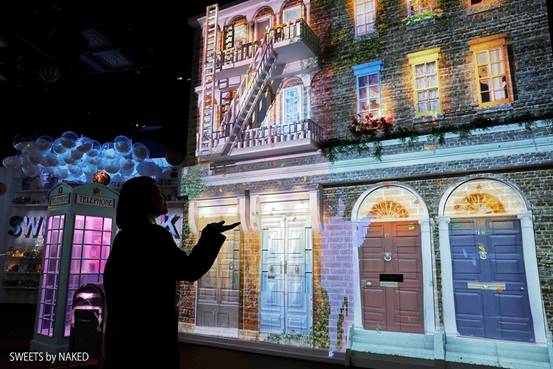 以有趣的人影互動投影,加上片片花瓣、糖果雨、甜點裝置藝術,創造投影多變的可能性。置身在這個夢幻場景,供民眾盡情拍照,感受瀰漫著春天氣息的氛圍。
