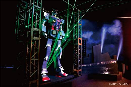 在東京臨海副都心「台場」登場!近三米的「實體大鋼彈立像」,運用光雕投影,將畫面、聲音、燈光融為一體,製造鋼彈的無比氣勢,重現2014年在台場的「TOKYO GUNDAM PROJECT 2014 鋼彈光雕秀“Industrial Revolution”-to the future-」的演出,再度激起日本動漫迷的熱血,其碩大的存在感,連男孩們都會為之震撼!