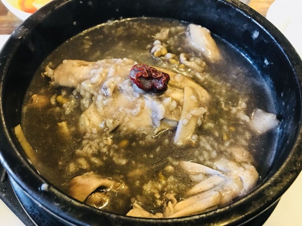 位於濟州中央女高對面的餐廳,以黑米蔘雞湯為特色,也別於一般韓國常見的白米蔘雞湯,反而為餐廳創造高人氣,米飯與雞肉都煮得軟嫩入味,另外來到這裡還可以點個鮑魚炒鴨肉享用,一次吃到餐廳人氣的兩種美食,除此之外,店家也有一些常備小菜以及餐後的飲品享用。