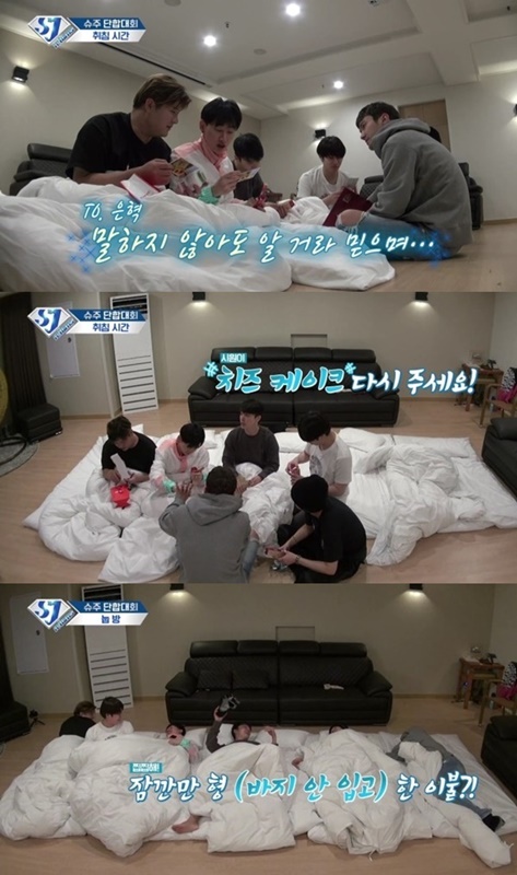 在銀赫、東海、始源3人退伍後,成員們更一起出外旅行,很久沒有一起出遊的大夥,放著房間不睡卻選擇在民宿客廳打通鋪,六個人躺在一起天南地北的亂聊,也讓他們回想起練習生時期,大家擠在一個小房子的時光。