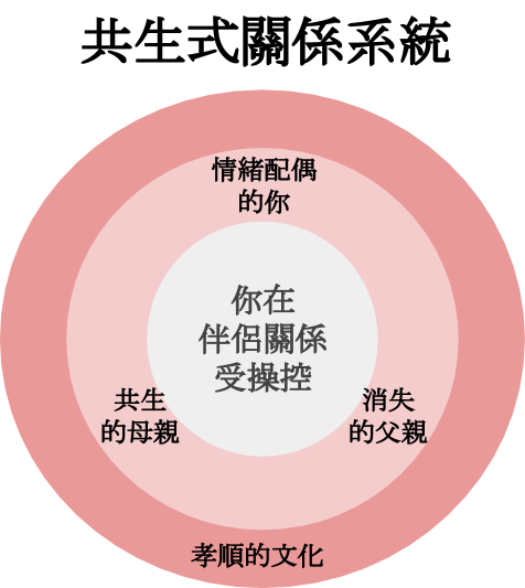 然後她終於發現自己和男友的關係,其實是一種共生關係(如圖),這並不是普通的共生,而是在一個環環相扣[4]脈絡之下的共生[5]:
