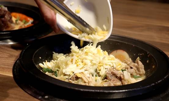 其實它的起司是另外放,等到鍋物先煮到差不多時,再將起司放下去,光看到起司在熱鍋上噗滋噗滋滾的畫面就覺得好療癒阿。