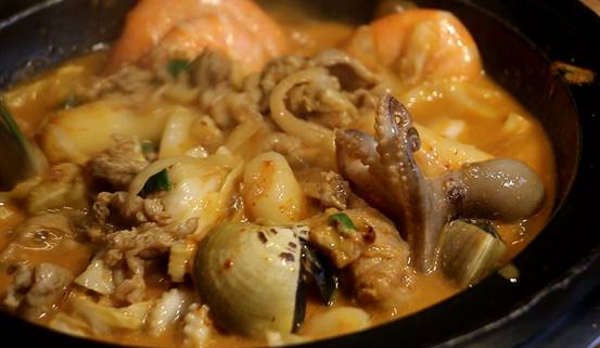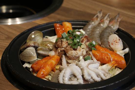 一鍋有滿滿的五種海鮮,干貝,魷魚、蝦子、小章魚、蛤蠣,食材十分新鮮。員工說這鍋本來當時是母親節活動限定,但因為客人反應不錯,成了口碑,便繼續將這鍋延續下去。