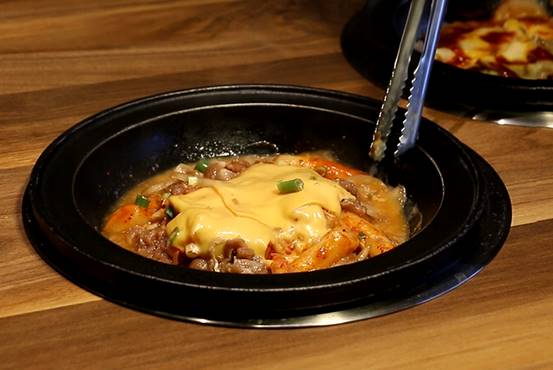 香濃起司融化在香辣泡菜裡,口感濃郁又帶著一點酸辣,實在很涮嘴,讓人好想再多配幾碗飯。