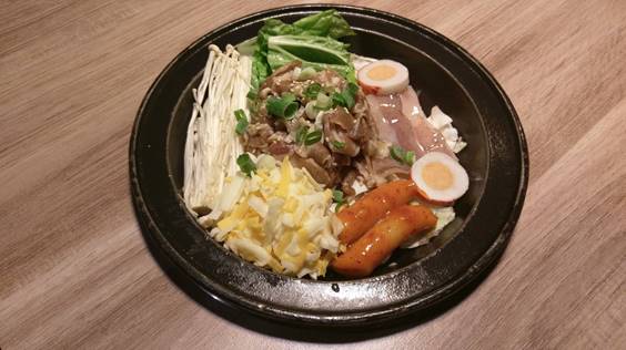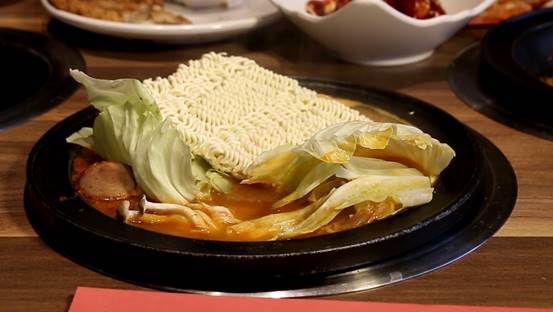 每個鍋物皆附韓式小菜、菜盤、韓式拉麵、白飯,也就是「第二吃」的套餐。