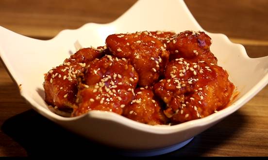 這道是以辣醬去調配蜂蜜所做出的醬汁,剛開始會吃到一點辣味,但尾韻出來則是蜂蜜的甜感,去骨的肉質也很多汁。