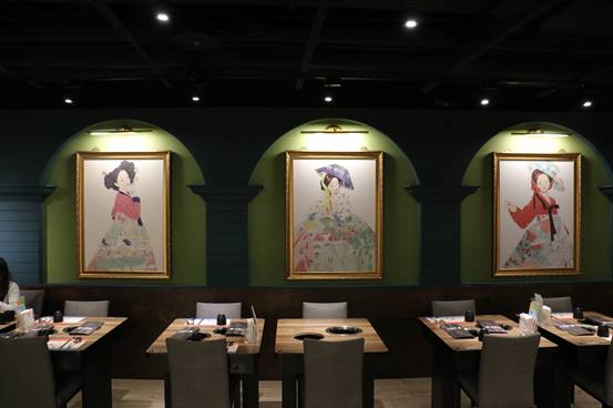 一踏進店門內就先被這幾幅穿著韓式傳統服飾的女人畫作給吸引,環境新穎卻又不失韓式餐館的風味。