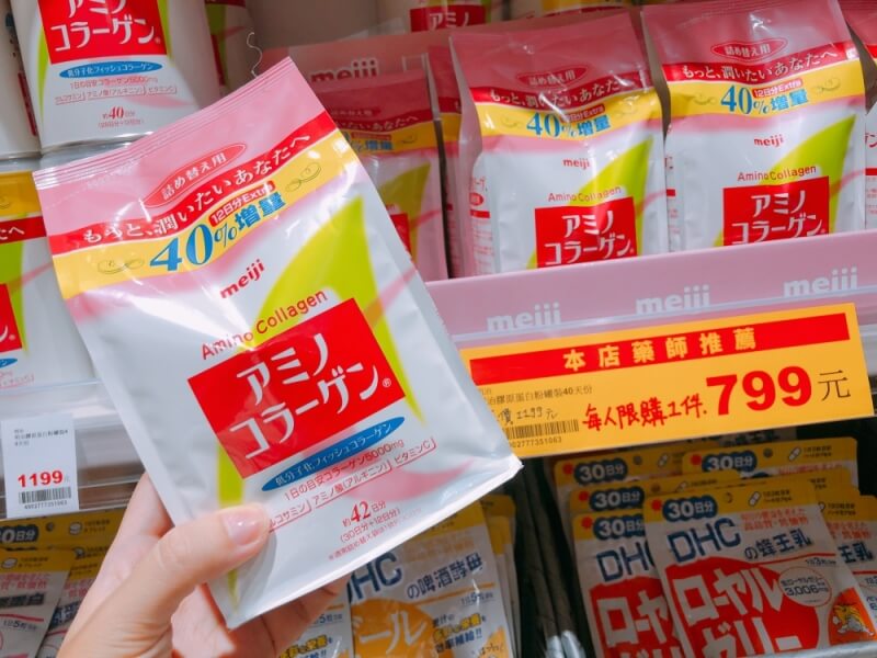 很多人到藥妝店一定會買的膠原蛋白粉,原本NT1199,松本清台灣正在特價中只要NT799,換算價格就跟日本一樣便宜(所以每人限購一件)!