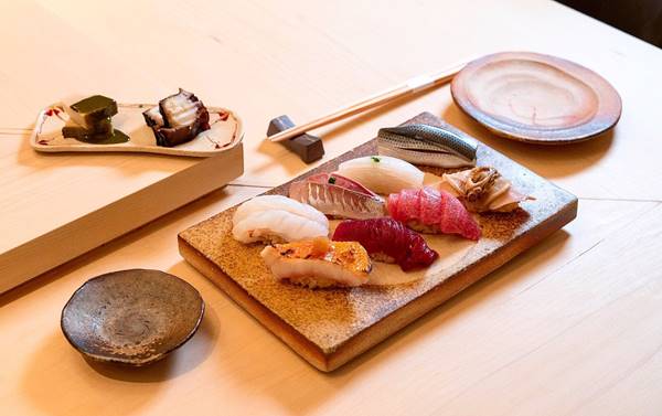 鮨隆的壽司吧檯以數百年加拿大木材打造,一室淡雅,充滿禪意。雖然2017年才開業,可主廚兼東主師從日本師傅,有穩紮經驗。鮨隆只供應無菜單料理。