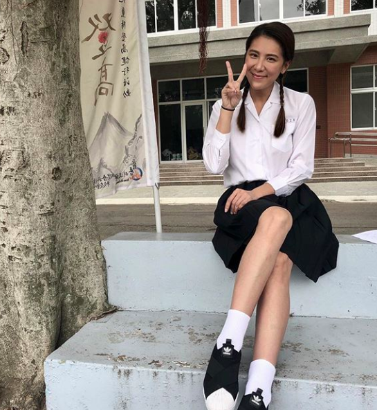 小禎在iG連發幾張穿上高中制服的照片,調皮說:「一早就胡鬧⋯這樣好嗎?」只見她綁上雙辮子淡妝入境,白色襯衫加上青春洋溢的百褶裙,搭上白長襪和黑球鞋,完全就是女神等級。