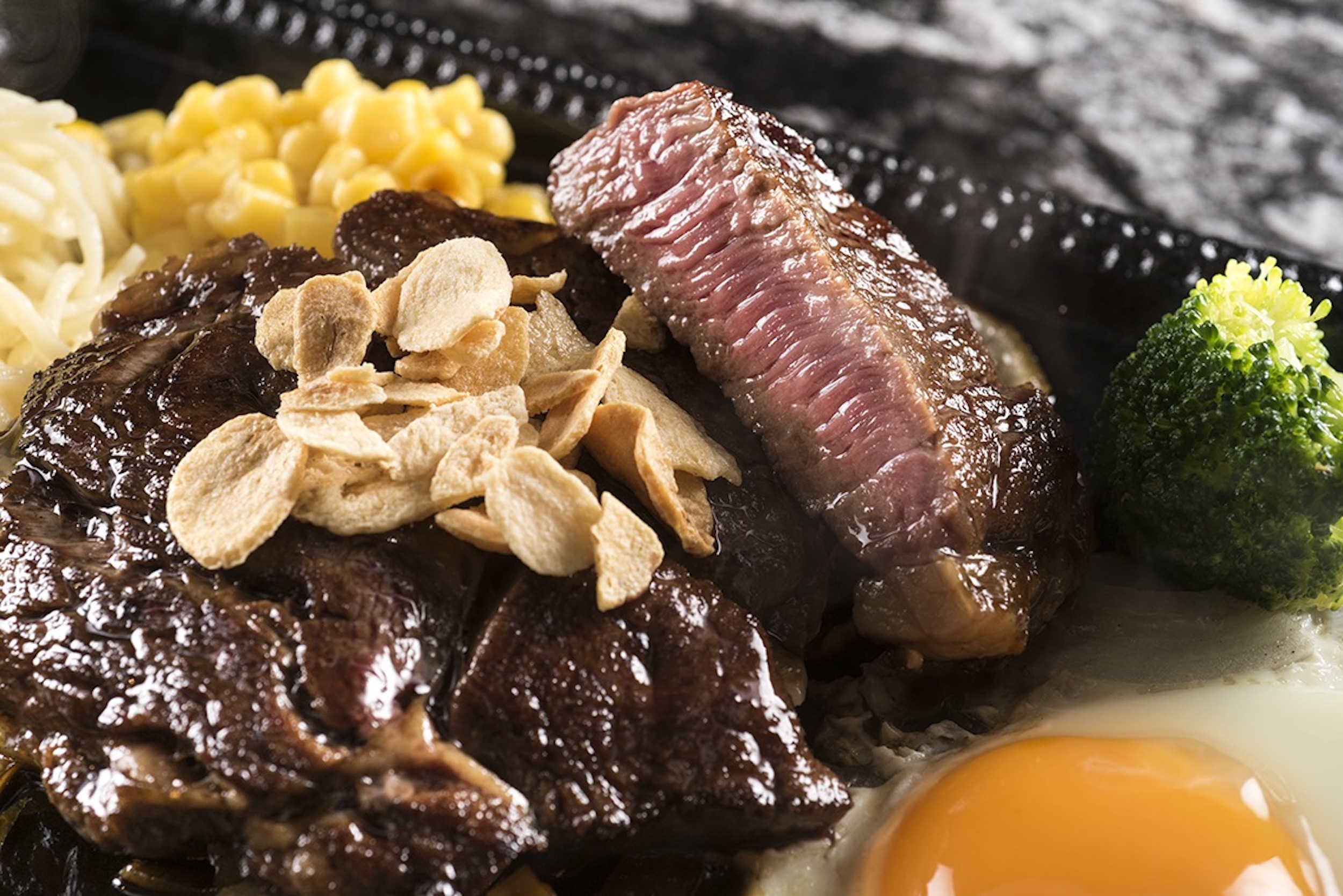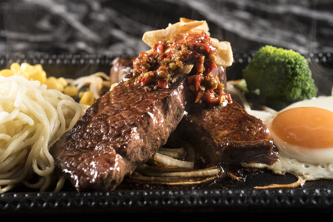響的金黃荷包蛋是腦中深刻的美味印記。『鉄火牛排』的『鉄火』二字取自排餐鐵板香煎及備長炭火烤之意,以懷舊鐵板呈現,炙熱鐵板裝盛肉排香噴上桌,淋上黑胡椒醬或蘑菇醬,鐵板麵、太陽蛋與蔬菜等鐵板排餐必備元素,『鉄火牛排』讓客人重溫兒時回憶。