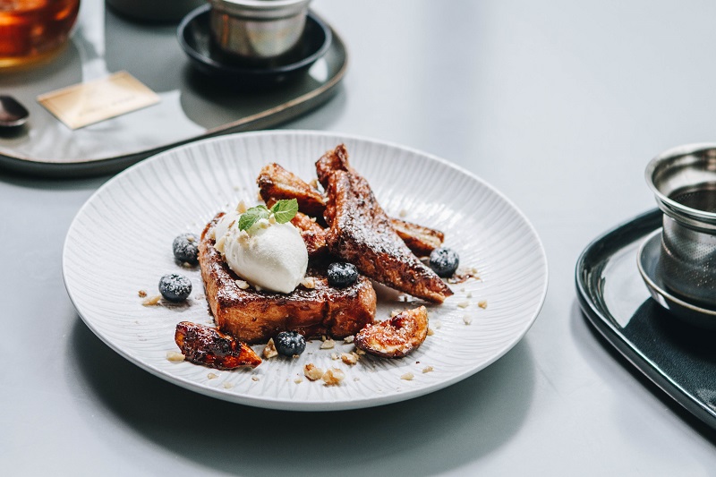 濕潤鬆軟的法國傳統麵包「布里歐(Brioche)」,抹上奶油及砂糖,小火慢煎成金黃色的焦糖脆皮,有著外酥脆內軟嫩的香甜口感,每咬下一口即發出美妙的卡滋聲。