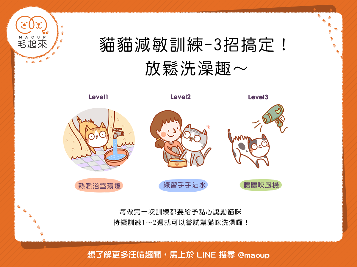 貓咪討厭洗澡,通常是因為不熟悉浴室和水所造成的緊張,要消除貓咪的這種緊張,需要一步一步、循序漸進地訓練哦!☝( ◠‿◠ )☝