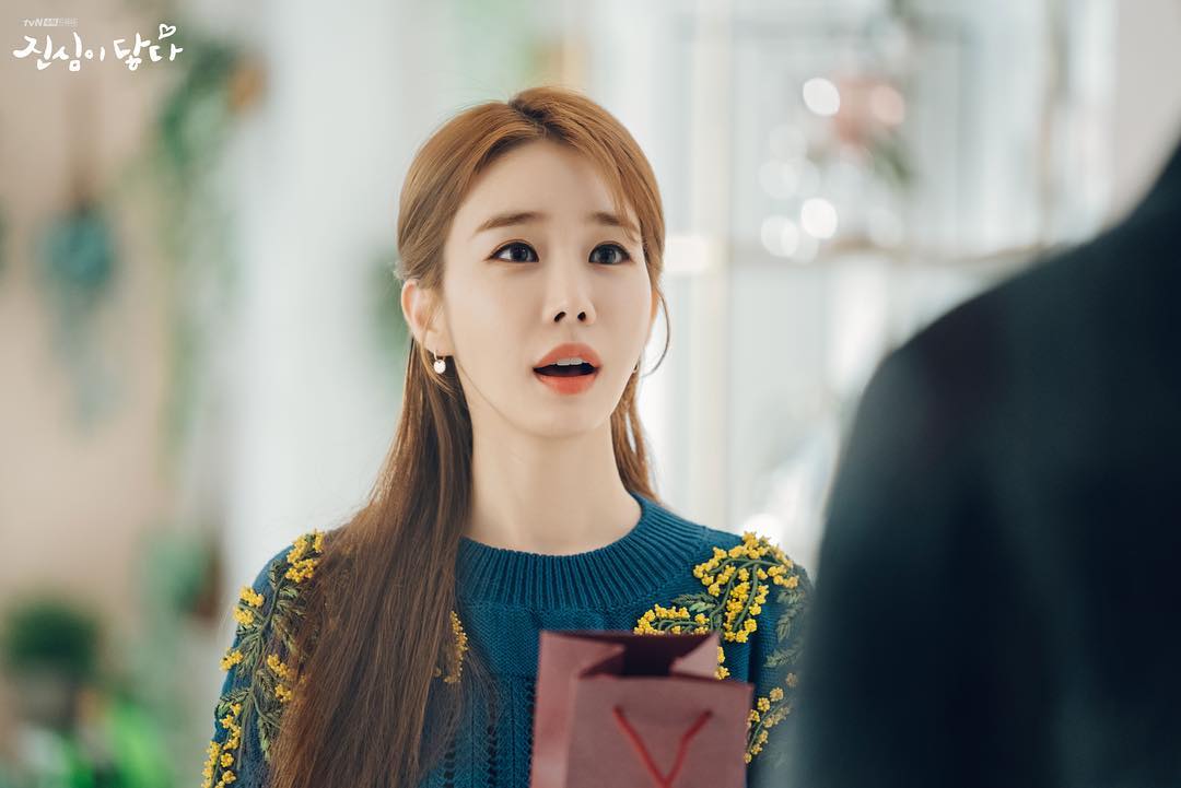提到小巧思,不得不稱讚劇中李棟旭初次登門拜訪劉寅娜時,她身上穿著Sonia Rykiel做工細膩的立體針織雕花上衣,深藍色的針織底色上頭結合了螺紋、網眼、及立體針織雕花的點綴,散落在雙肩的小巧黃花顯得甜美可人,果然一瞬間就收服了李棟旭!