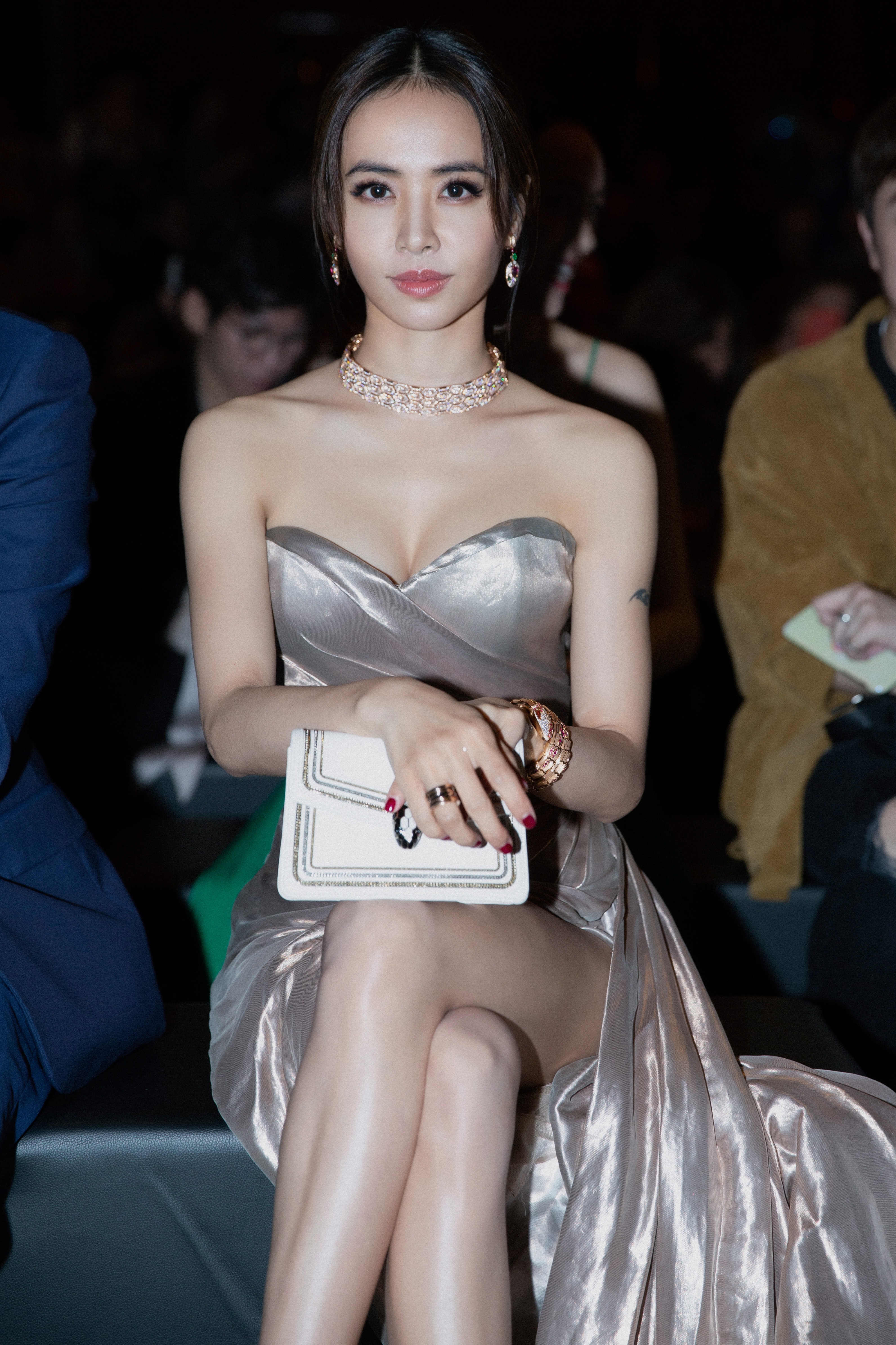 早在去年摘下品牌代言人頭銜時,蔡依林便自信表示,與魅惑之蛇最呼應的就是自己的「水蛇腰」。如今在活動上她更展現妖嬈身段,不只緊實纖腰,尤其性感美胸和開高岔露出的大長腿,搶盡鋒頭!