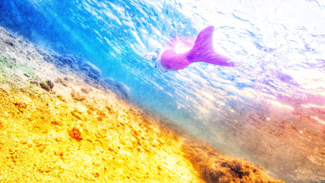 美人魚體驗就像浮潛一樣,可以戴著面鏡及呼吸管,游在水面欣賞海底世界。但若想美美的拍照,還是要稍微潛下去一些,不戴面鏡和呼吸管最美。