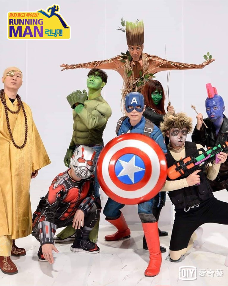 其實成員們之前就曾扮過英雄人物,這次的又更加爆笑,最逗趣大概是李光洙扮演的「格魯特」和梁世燦扮的「火箭浣熊」,大家為了節目都豁出去,超低成本的Cosplay 依舊吸睛,而宋智孝扮成的葛摩拉根本神還原,就算完全變了個人,還是能夠完美駕馭,擋不住美麗的氣質。