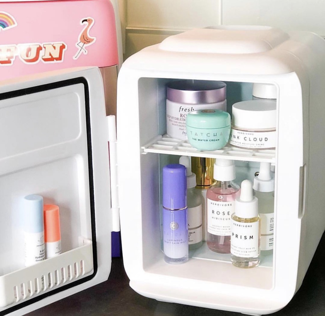 Makeup Fridge近期推出了各種顏色的小小冰箱,冰箱大小差不多就跟一台電腦主機一般大,馬卡龍色系繽紛的小冰箱放在化妝檯上,瞬間讓化妝檯美到一個不行,除了有基本款白色之外,更有粉嫩色、粉藍色,快幫你的保養品們找一個專屬的家吧!不要讓它們在外面流浪。