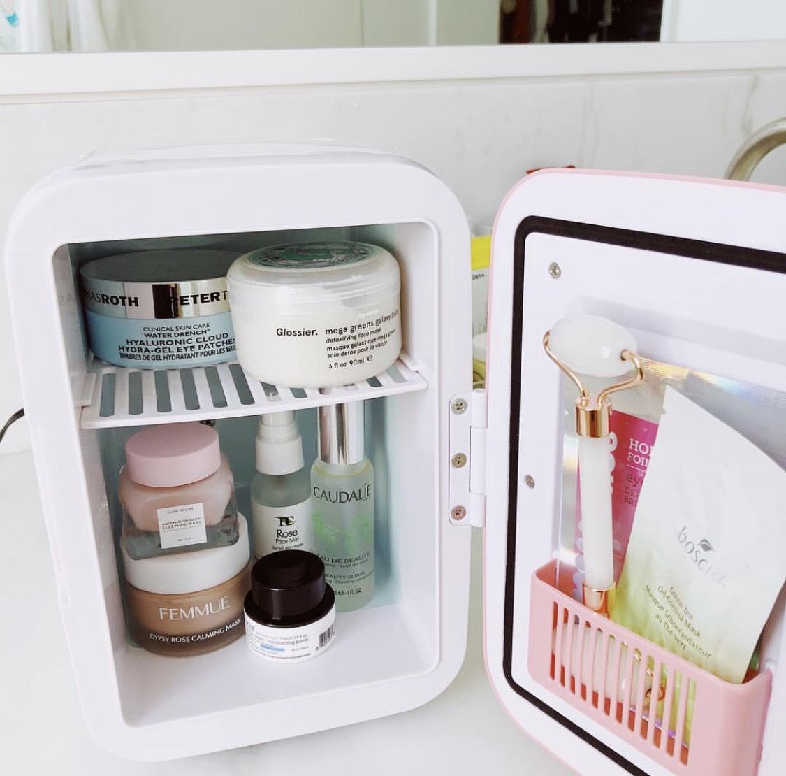 你可能問說為什麼要冰箱?而不是收納櫃就好,其實很多保養品很怕高溫,或者是溫度的改變,為了讓保養品裡的活性成分可以繼續發揮應有的效果,放在溫度穩定的地方絕對是必需的,另外也可以阻擋太陽照射,以免保養品變質。