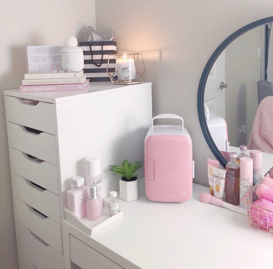 不知道女孩們都怎麼收拾保養品的瓶瓶罐罐,就儂編觀察有收拾和沒有應該差不多,頂多就是放抽屜或者買一些塑膠架子,這已經算很會收納了!最近在IG上爆紅的「美容小冰箱」不單外觀可愛,還有冷藏功能,讓保養品有個專屬的家,超級療癒!