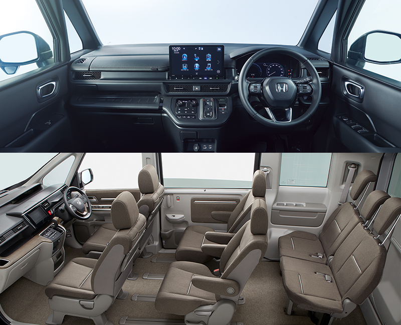Stepwgn開發目標就是對應家庭買家,每一位乘員在每個座位上最舒適地乘坐感受,透過Honda一項專長地擴大車內視野,讓駕駛者可以充分掌握車況,並讓更好的視野,讓乘客降低暈車的可能。並同樣以Honda最擅長的空間規劃,提供寬敞第七人座空間。座艙中,Stepwgn Air以暖色調來營造有如家中起居室的氛圍,而Stepwgn Spada則是採深色基調,強化時尚感。而全車系座椅表面都採防水防油處理,以便清潔。