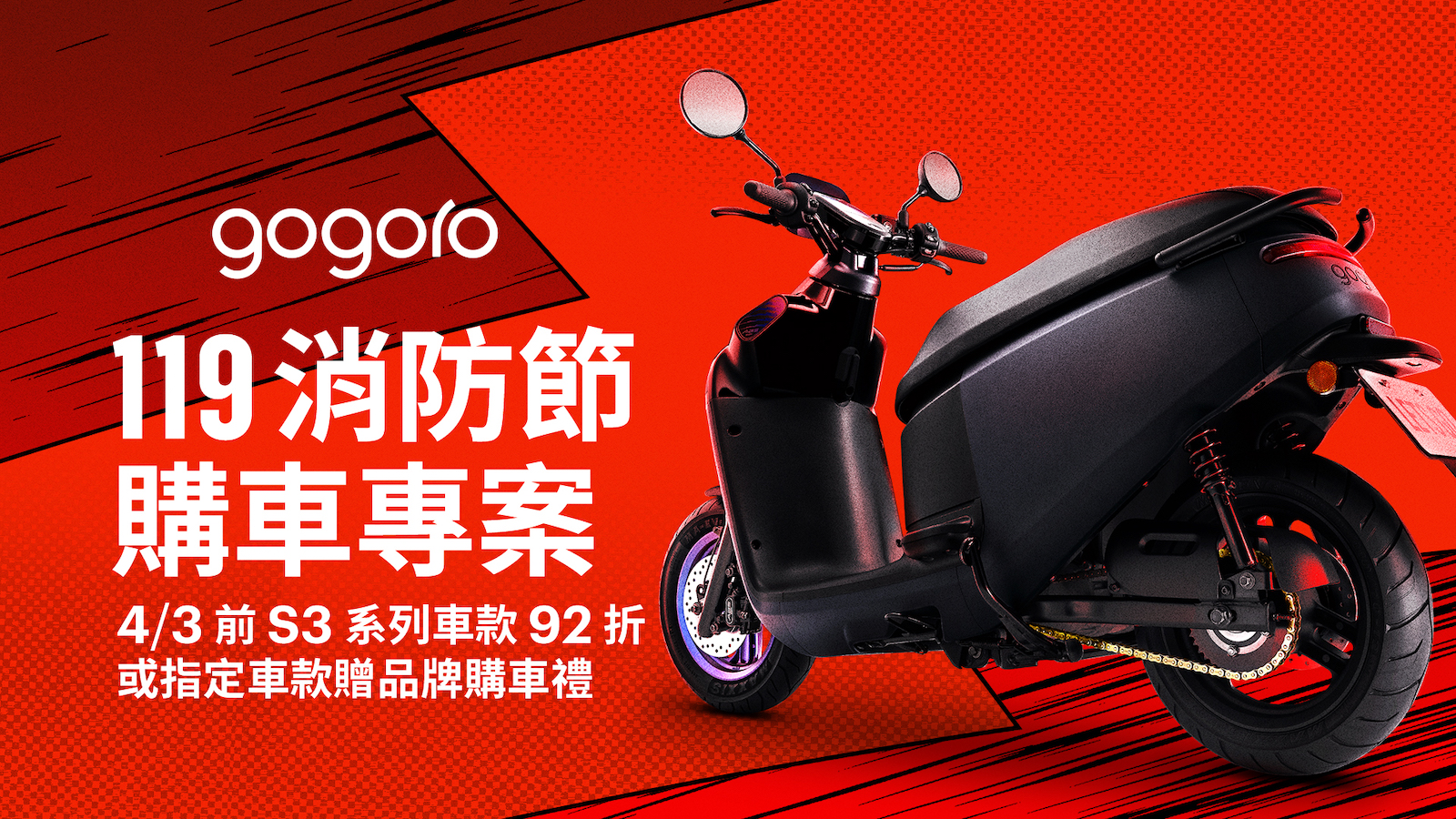 Gogoro 自即日起至 4 月 3 日特別推出「119 消防節購車專案」,包括全體在職消防人員、行政人員和義消等工作人員,皆可享有指定車款 92 折的購車優惠,購買全系列車款加碼贈送 Gogoro 品牌風雨衣乙件。即日起自 2 月 9 日,消費者至 Gogoro 全台門市走春賞車,說出有 ” 虎 ” 字吉祥話,就可以抽「 大騎大利 」好運籤,人人都有機會獲得 Gogoro 小綠人造型存錢筒、Gogoro 紅包袋、Go 大騎大利毛氈杯墊等眾多好禮。