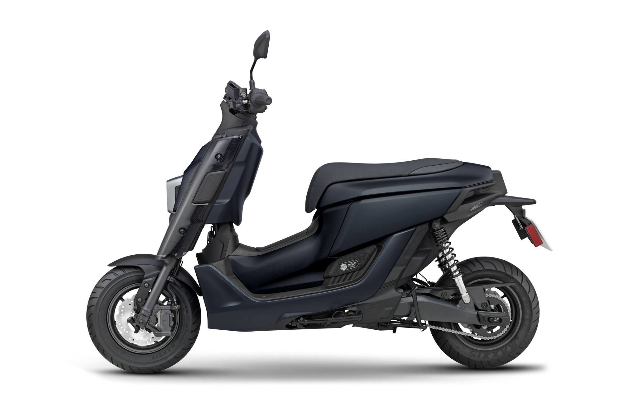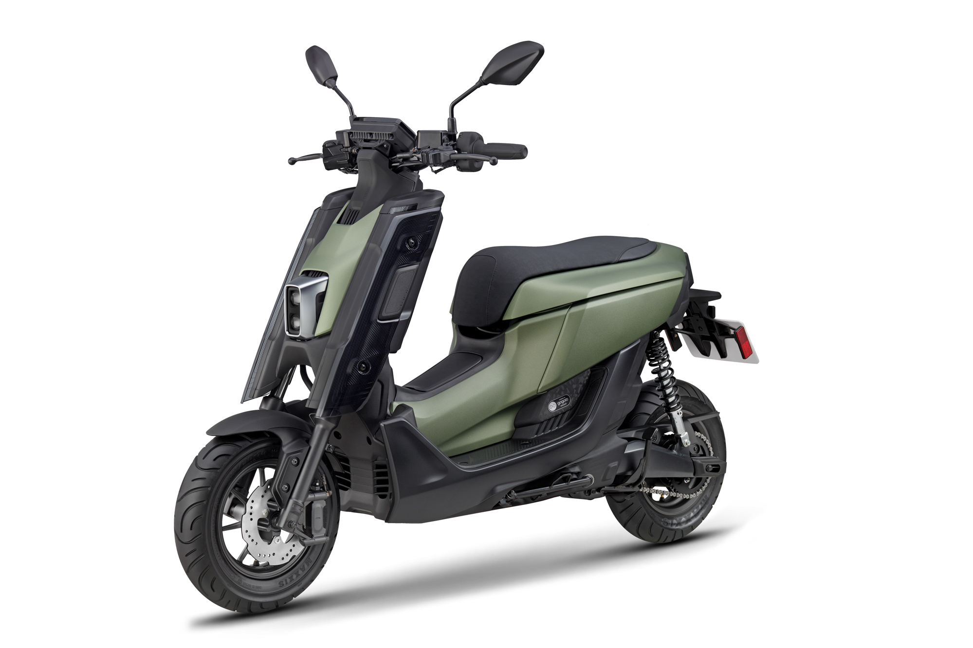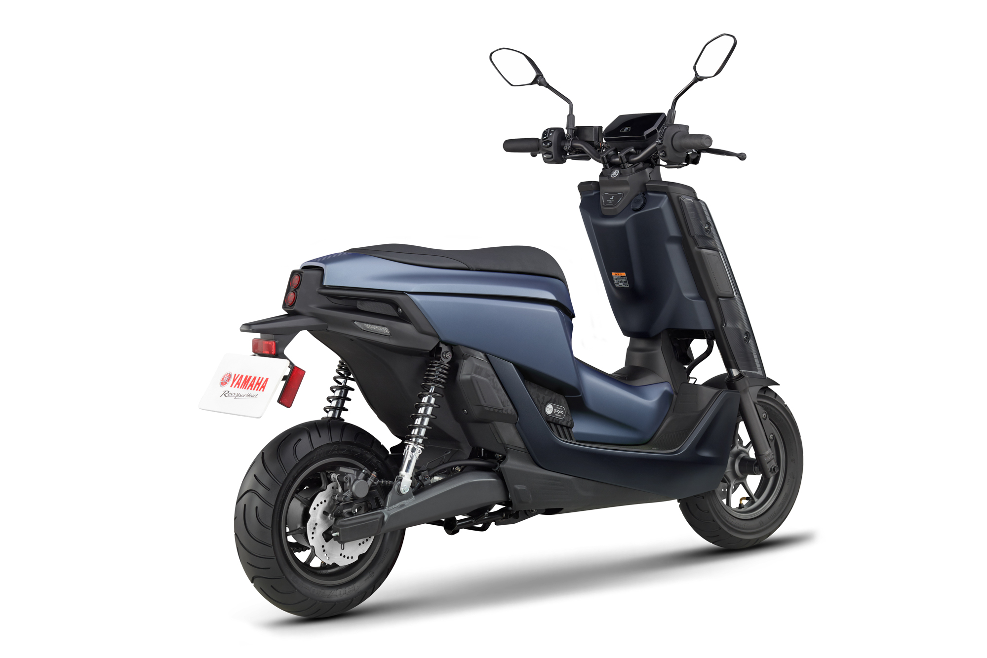 左1-YMT高晴珀副總經理、左2-工業局呂正華局長、中間-YMT奧谷賢宏總經理、右2-YMRT許漢權總經理、右1-YMT由井淳也副總經理。 EMF 雖然同樣立基於 PBGN 動力基礎,但外觀上導入 YAMAHA 原創設計,以近未來無機生命體為核心概念打造,創新工藝設計的車輛外觀曲線加上多元且差異化的改裝套件,與當前台灣市場電動機車明顯不同。