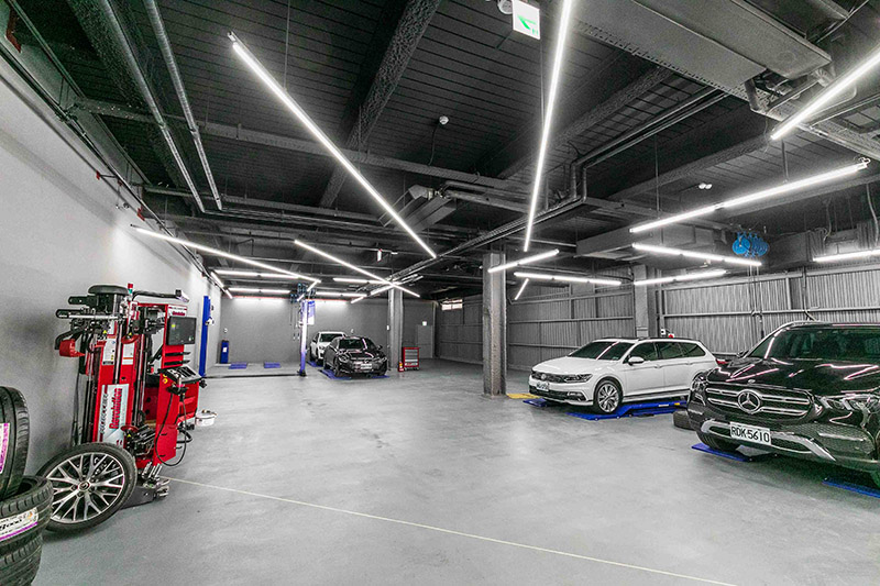 Carguru Plaza 1樓保養廠不僅配置原廠專業訓練技師,服務設備也斥資百萬以上引進汽車底盤設備世界第一品牌「美國HUNTER獵人牌」旗下「革命 Revolution全自動機器人拆胎機」以及「Smart Wight Pro雷射省鉛平衡機」。在專業技師與專業配備雙重搭配下,更智慧又精確地提升車咕嚕服務品質。