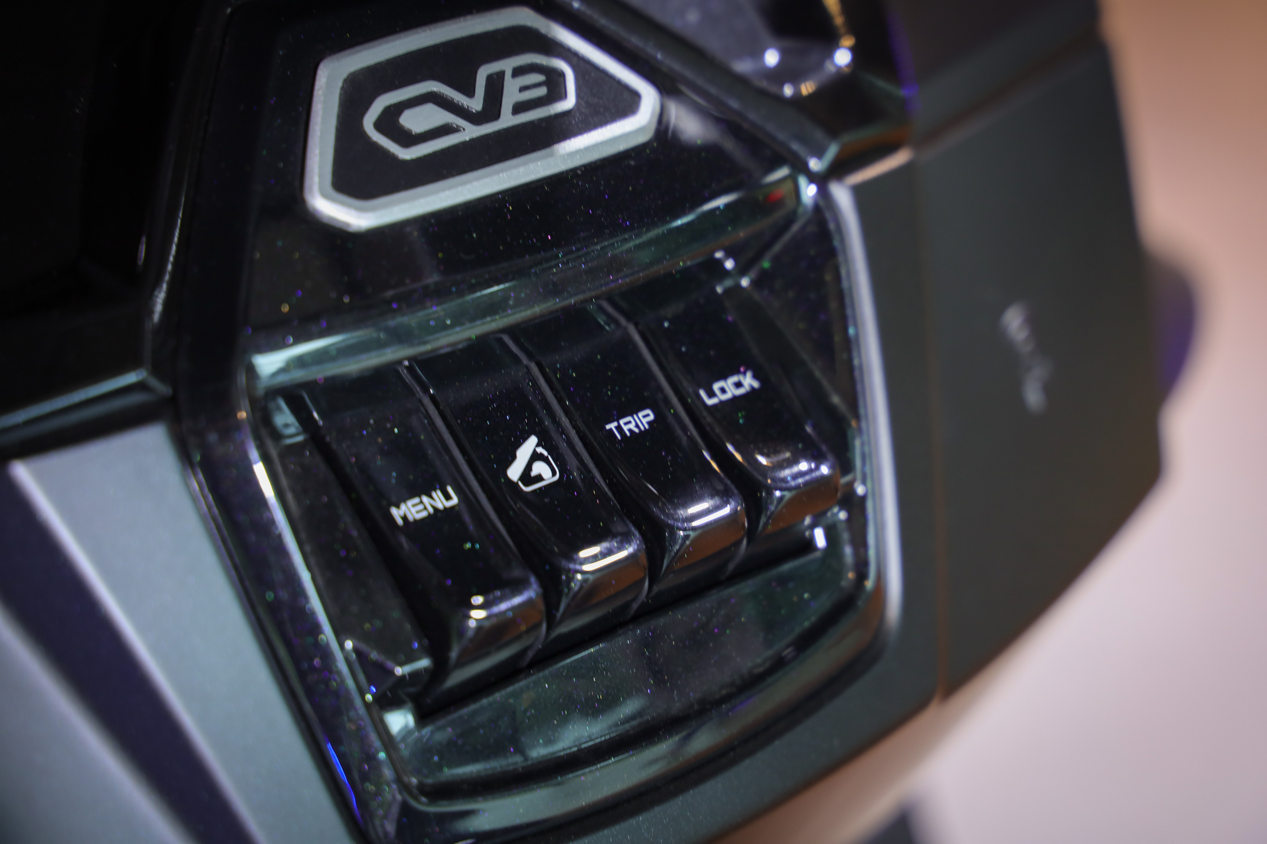 配備有 TPMS 胎壓偵測器。 不過但還是建議 CV3 應該裝設倒車檔,不然 282kg 的車重在斜坡調頭還真有些費勁。此外行李箱容積官方雖說可以放進一頂全罩安全帽,但這類車主很有可能一言不合就環島,因此添購個後行李廂是較為建議的做法,所幸原廠設計之初就已經留有相關擴充系統,車主可視自行需求選購。