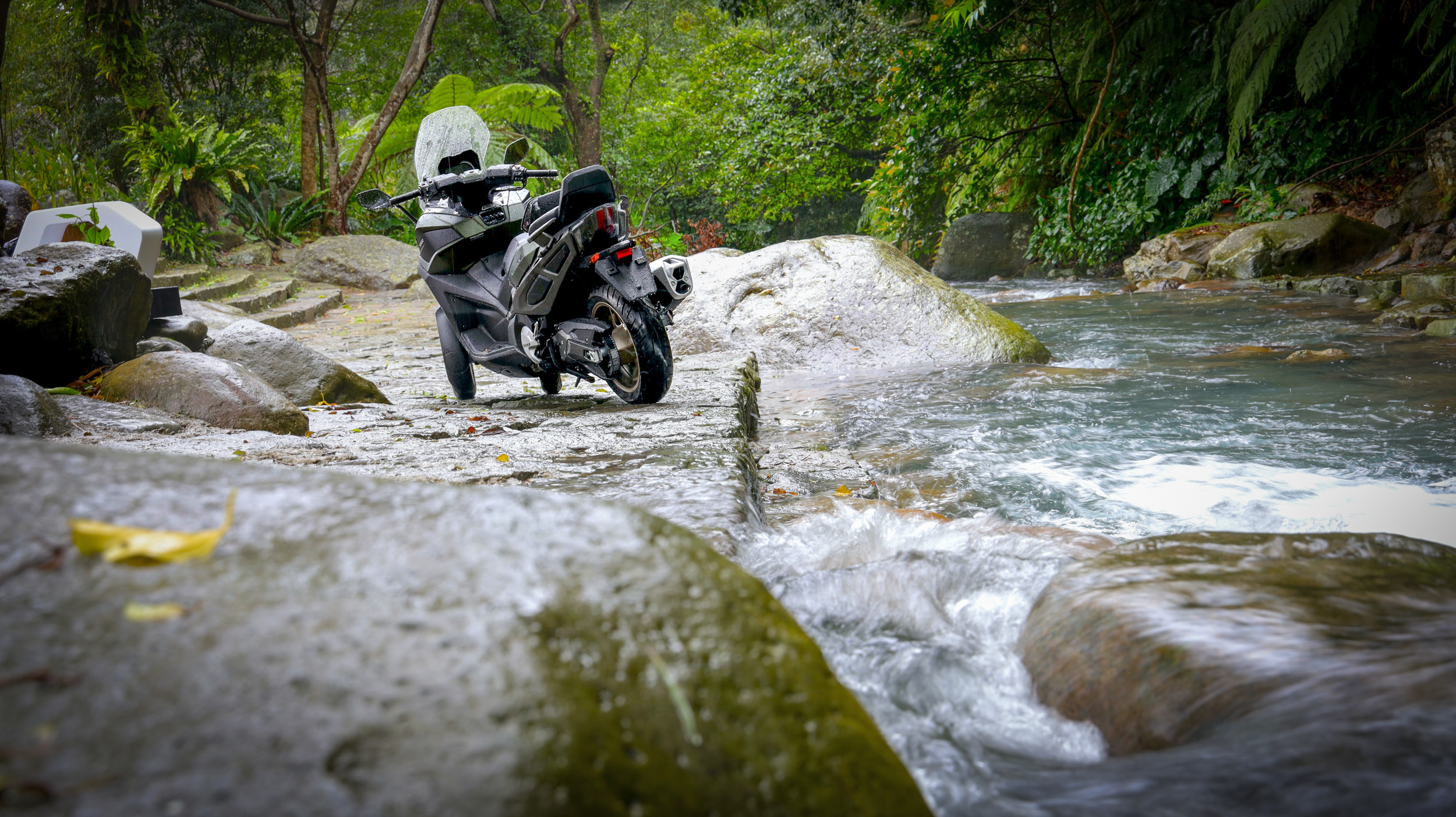 試駕當天為雨天,相較一般重機多了一個輪子的 CV3 穩定許多,並配備雨天模式,動力輸出更為和順。