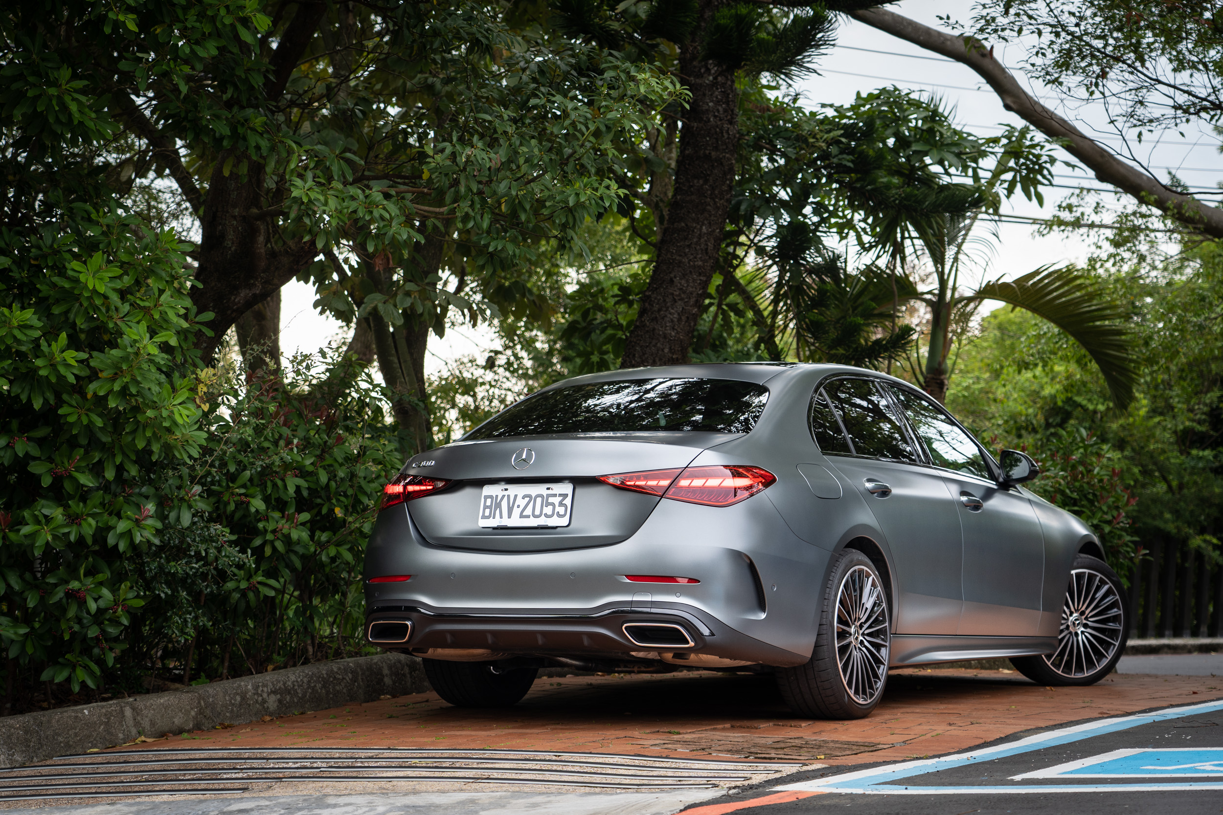 相較於上世代的直立式尾燈,W206 世代 C-Class 的分離橫式尾燈為改款辨識雙側鍍鉻排氣尾飾管特色之一。
