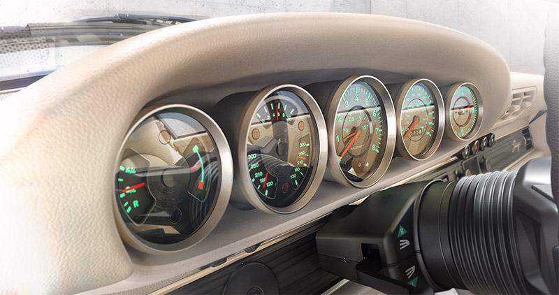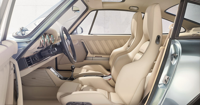 座艙陳設依照Singer慣例,提供高度客製化打造服務,每位車主都可以依喜好搭配內裝配色與各部件材質,展示車則是採用Malibu細沙色為基調搭配黑森林原木飾板,另外,Singer也提供加熱電動調整座椅與定速巡航控制系統等配備供車主選擇;而就如同Singer一再強調的高度客製化,所以Turbo Study並沒有設定基本建議售價,每一輛Singer車款都會是由客戶向原廠訂製。