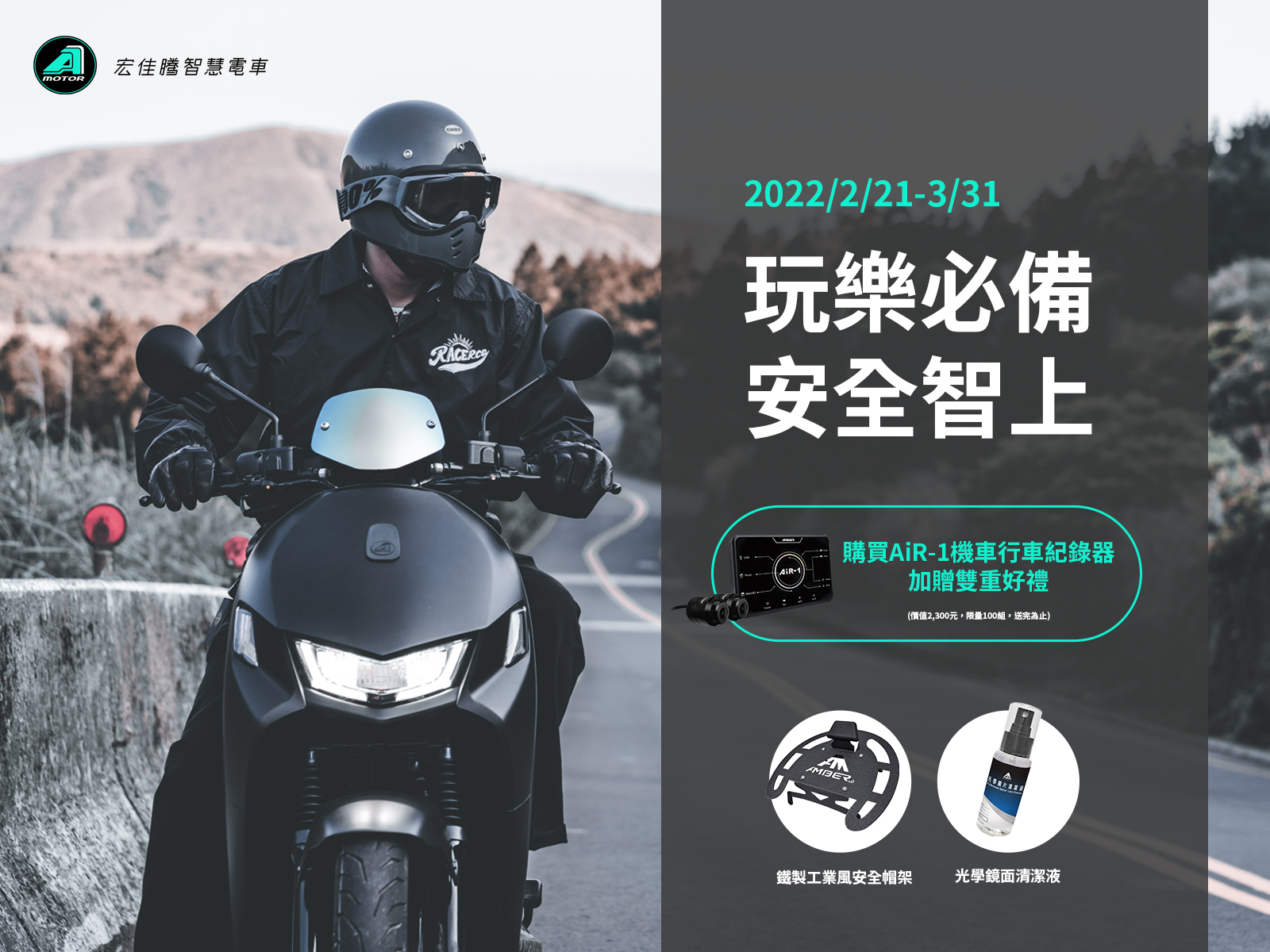 而針對想購買智慧電車作為最佳拍檔的外送平台夥伴,宏佳騰智慧電車也推出 2 月 28 日前購買 Ai-1 或 Ai-3 任一車款(包含 Ai-1 Sport+),即可享有早鳥三好禮或原廠精品貨架組二擇一購車方案,讓您牽新車就可擁有外送載貨好幫手的高強度貨架配件。歡慶新車上市並提供消費者更完整的安全體驗,3 月底前選購 AiR-1 機車行車紀錄器,再贈送總價值 2,300 元的安全帽架與光學鏡面清潔液,限量 100 組。即日起至全台智慧門市試乘體驗並填寫問券,還可免費得到只送不賣、輕鬆拎著走的「品牌飲料提袋」乙個,數量有限、送完為止。