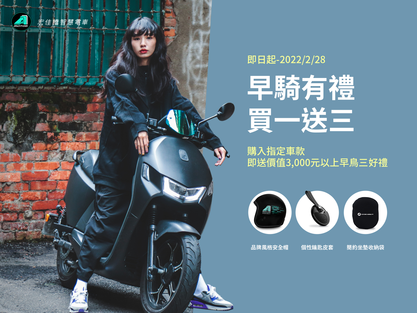 此外,各縣市政府補助陸續公告之際,宏佳騰智慧電車加碼祭出多項購車優惠,2 月 28 日前購買 Ai-1 Sport+、Ai-1 Sport/ABS、Ai-1 Comfort+、Ai-1 Ultra ABS 與 Ai-3 Comfort 系列任一車款,即贈總價值 3,000 元以上包含「品牌風格安全帽」、「簡約坐墊收納袋」跟「個性鑰匙皮套」的早鳥三好禮,還可搭配全車系指定信用卡最高 30 期零利率,最低月付不到 2,000 元將宏佳騰智慧電車騎回家。