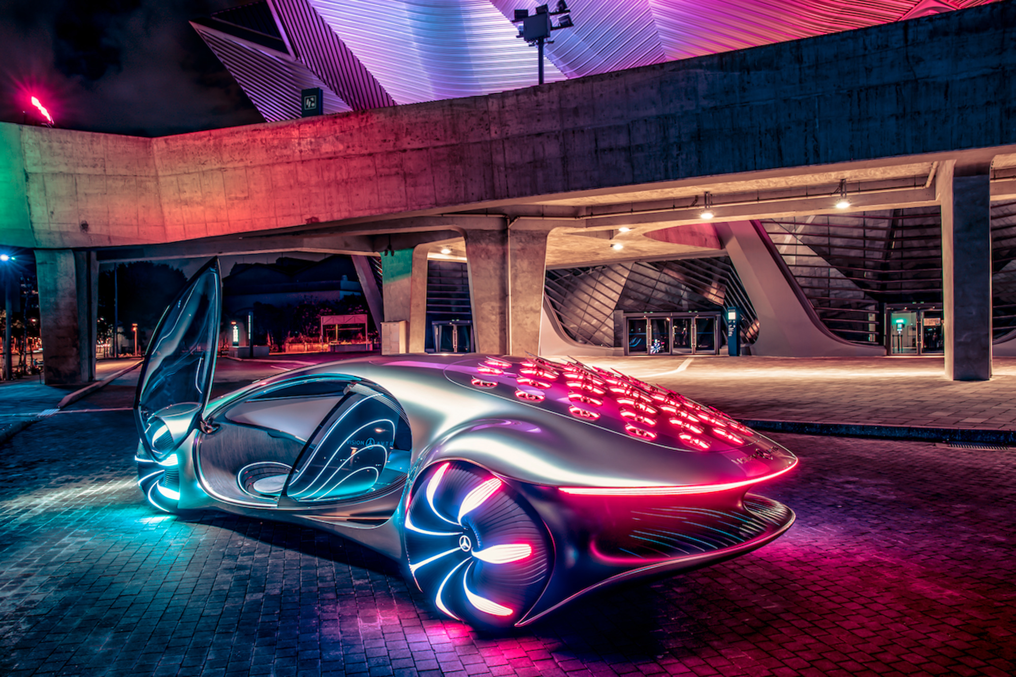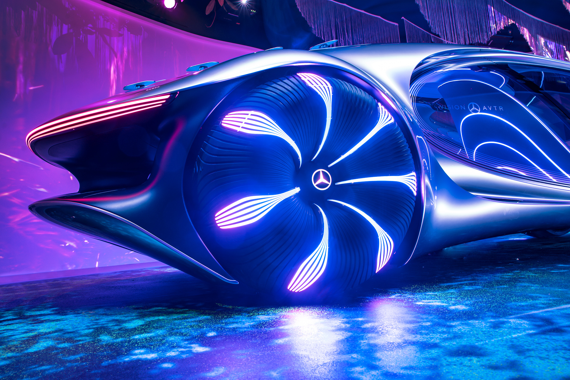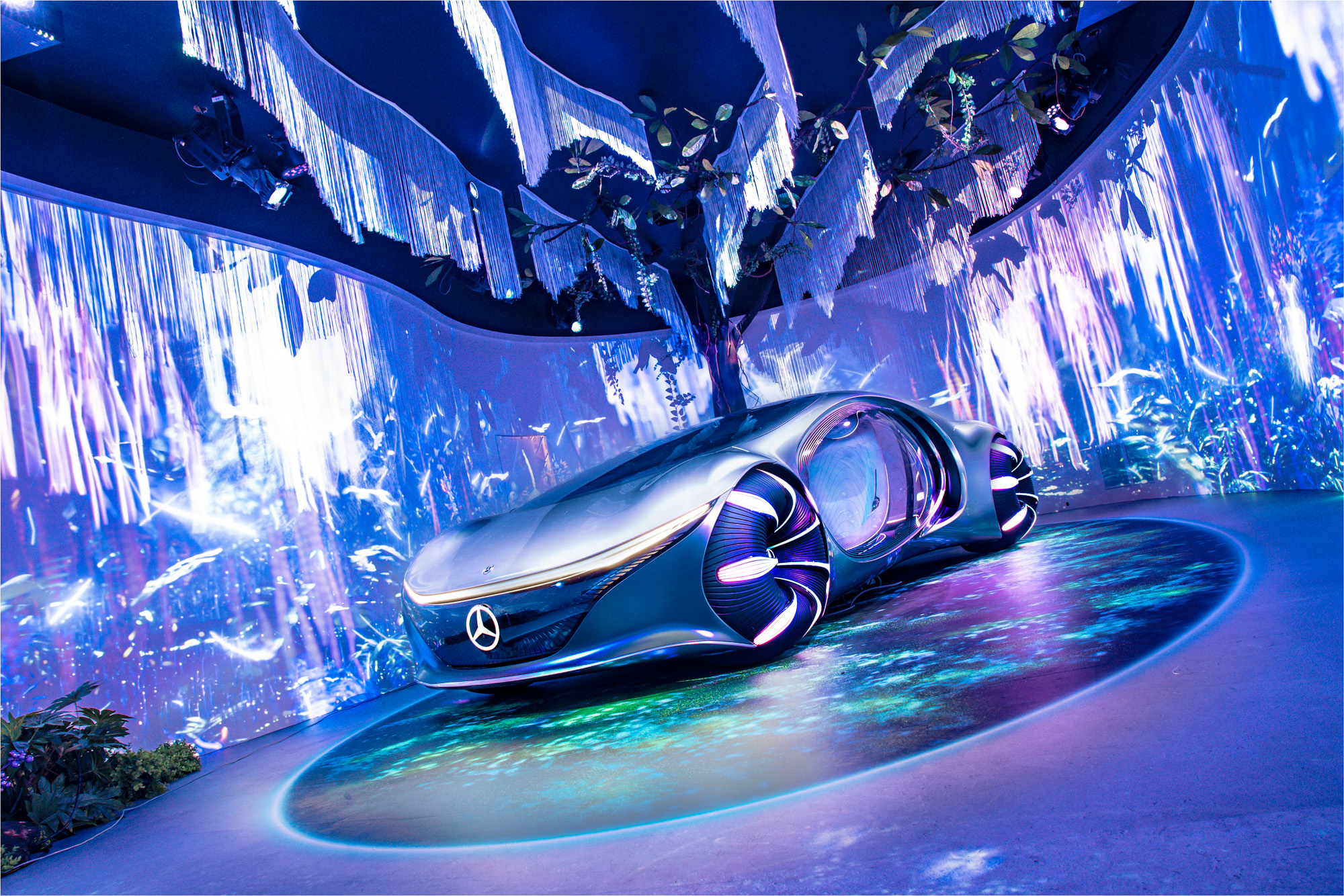 Mercedes-Benz 與電影《阿凡達》共同設計的 VISION AVTR 電動概念車,是一種前所未見、前衛先進的造車概念(ADVANCED VEHICLE TRANSFORMATION)。創作靈感起源於電影《阿凡達》中生長在潘多拉星球的納美人,其重視與大自然的和諧共處,取之於大地,回饋於大地,創造生生不息面貌,這樣的生活態度與 Mercedes-Benz 長期秉持的永續經營目標,不謀而合。VISION AVTR 電動概念車以永續及仿生概念為開發核心出發,藉由賓士造車工藝技術、先進感應科技與突破性的車輛設計,釋放車輛裡的智能靈魂,以先進電池技術打造零排放、高效能的動力系統,全車透明、與外在環境相互呼應的互動式車輛設計,進而呈現駕駛、科技與自然的完美融合,進一步體現 Mercedes-Benz 對於未來豪華車的永續理念。