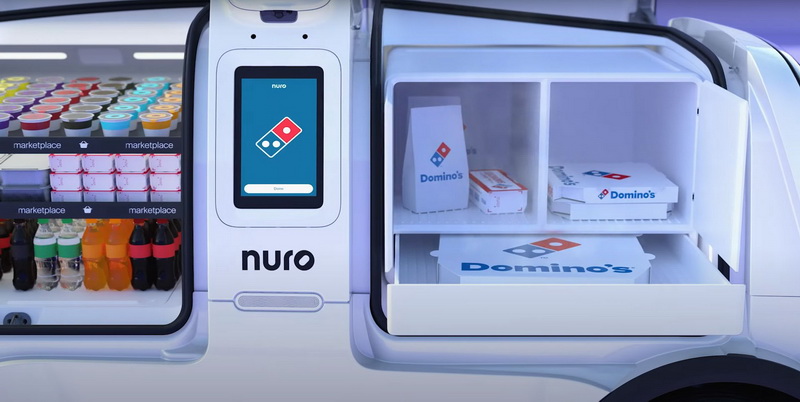 第三代Nuro自駕物流車同樣是以運送輕巧簡單的物品為主要訴求,其車艙的載運量可達227公斤,透過車上的冷暖空調設備可將食物保存在-5.5度的環境,或者運送47度的溫熱Pizza也不成問題;在外觀上與前幾代的最大不同處,在於車頭前方在發生碰撞時會自動彈出安全氣囊,藉以保護路上之行人、自行車騎士或摩托車騎士。