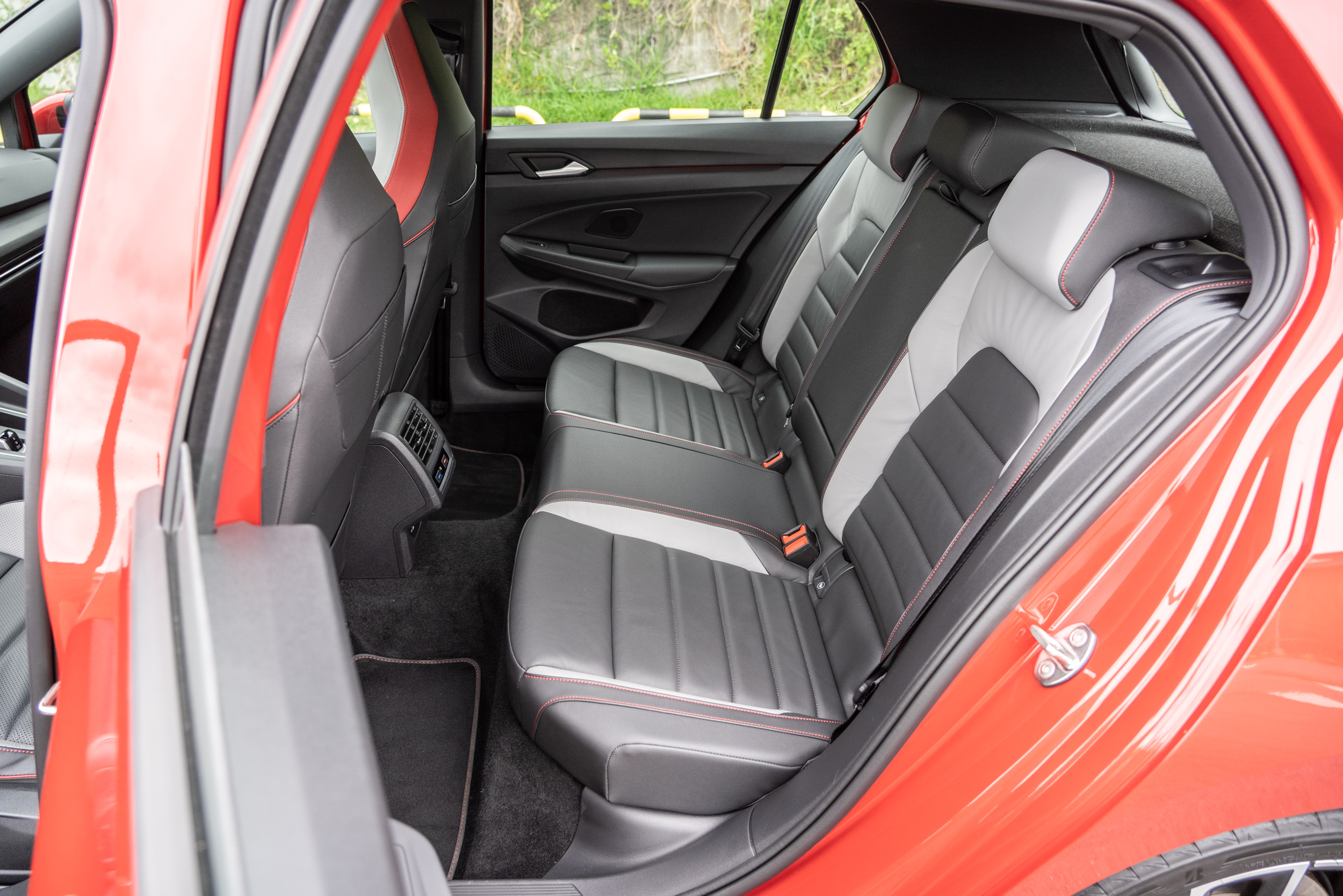 手機無線充電板也為標配。 那多數人印象中的 Golf GTI 呢?車內紅色的縫線、GTI 的銘牌、金屬腳踏板、黑色頂篷等也沒漏缺,只不過換上了真皮跑車型座椅,那熟悉又對味的布質格紋座椅不再,但換得的是駕駛座電動調整與雙前座通風加熱功能,這個往豪華與舒適面的交易,再搭配上這包覆性不錯的座椅造型,我相信多數的買家應該都會同意。